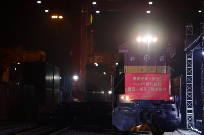 Із сухого порту в місті Сіань (Китай) відправився перший контейнерний поїзд у 2025 році. Із 50 контейнерами він вирушив до Ташкента.