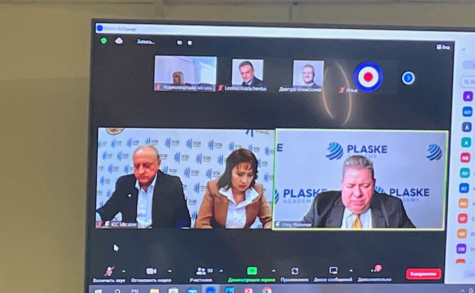 Перша панель форуму «Міжнародний досвід успішного бізнесу. Дорожня карта». Міжнародні партнери сприяли підписанню угоди про транспортні коридори з півдня України, зокрема, Одеського та Чорноморського портів. Оцінку перспектив цього процесу дали Олег Ісаакович Платонов , Віцепрезидент ICC Ukraine з питань спрощення процедур торгівлі, транспорту та митної справи, компанія PLASKE (Одеса).