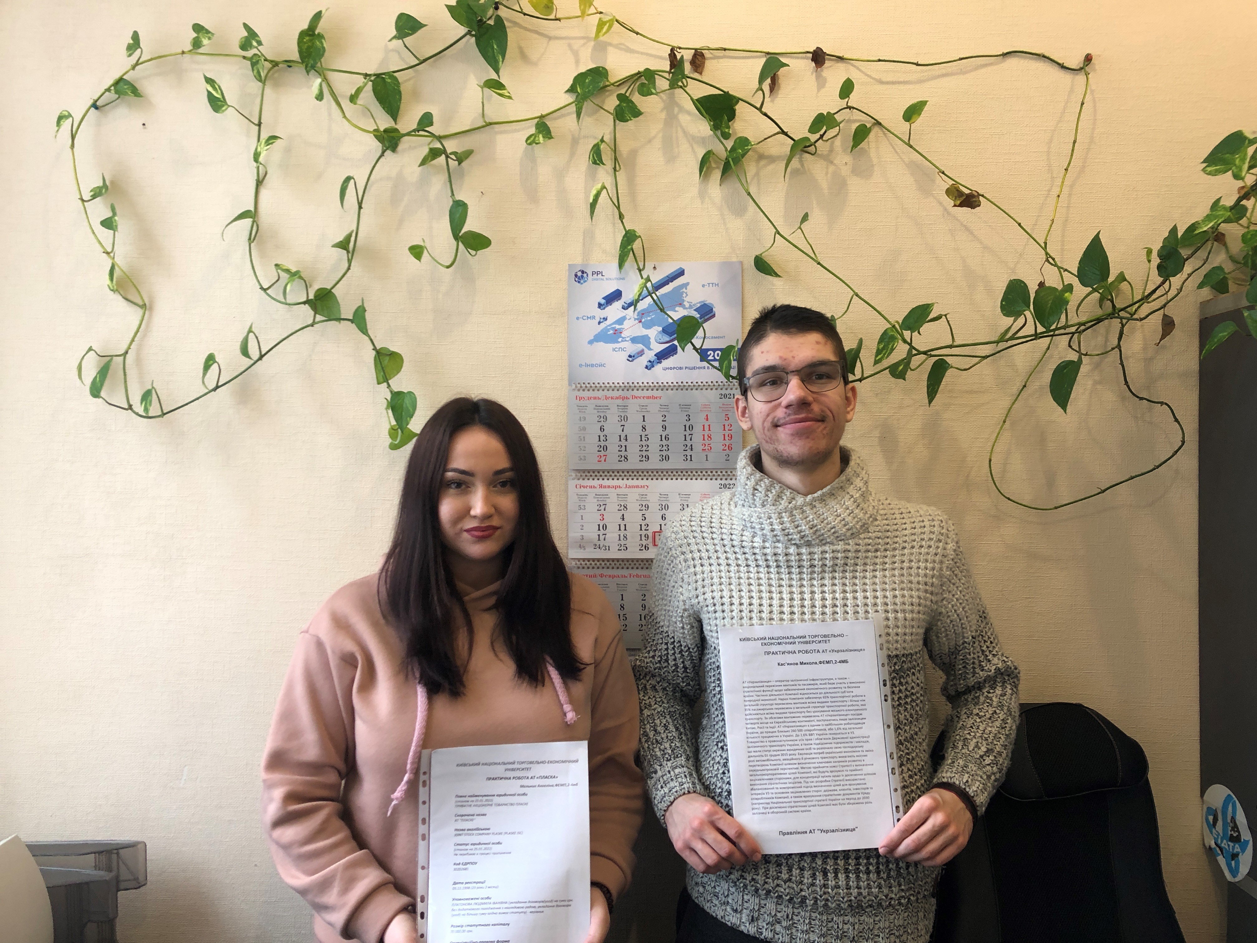 На базі АСОЦІАЦІЇ «УКРЗОВНЕШТРАНС» студенти Київського національного торговельно-економічного університету пройшли виробничу практику. Мельник Ангеліна та Касьянов Микола студенти 2 курсу 4 групи денної форми навчання факультету економіки, менеджменту та психології проходили практику з 18.01 до 28.01.2022р.